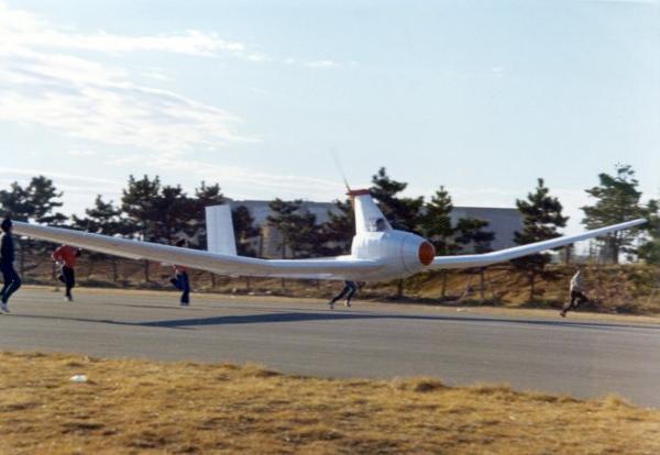 At Nihon University progress continued, as described by Prof. Kimura :- "In 1972, a well equipped runway, 620 meters in length and 30 meters in width was completed along with a hangar in the precincts [of Nihon University]. The research base for HPA was moved out there. At the same time, model changes were carried out. The new series was named the `Egret', which was supposed to fly better than the `Linnet'.