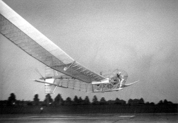 VERSTRAETE/MASSCHELIN Bros This Belgian trio made several elegant machines contemporary with the Aviette. One was transported to France to fly at Calais-Marck airport because the Belgian authorities would not grant a permit to fly. The flights were remarkable for the altitude gained (about 15 feet (4.5 m)) and the performance on a base adjacent to the sea where wind is both fierce and gusting. Wingspan was 85 feet (26 m) and weight 117 lb (53 Kg).