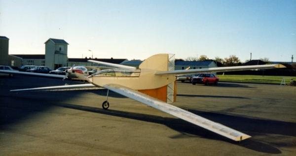 The machine was partly constructed in the 1970s by John Frost. The structure was aluminium tube with a maze of bracing wires and control was by wing-warping, similar to the Condors of the same period. The wing was covered with Dacron, a heavier material than Melinex, and the wing-area was only a third of the Condor. Span was 80 ft (24.4 m) with a wing area of 250 sq ft (23.2 m2), and empty weight was 92.4 lb (42 Kg). Configuration was flying wing. Frost died in 1979 before the craft was complete and the machine became the property of the Auckland branch of the RAeS. In 1983 it was handed over to University of Auckland.